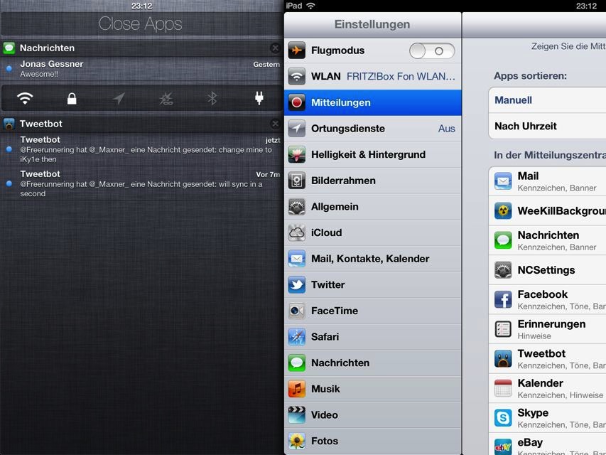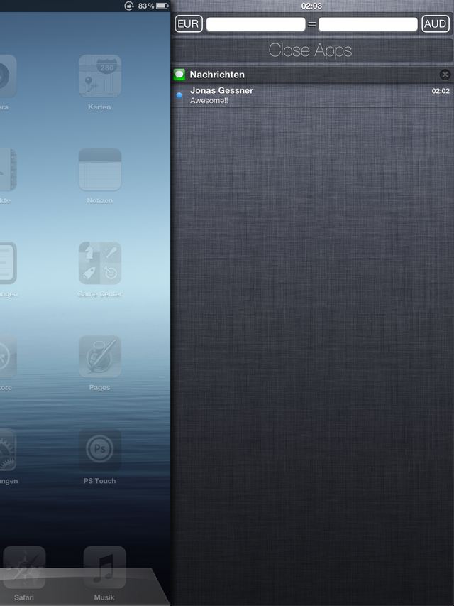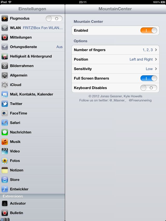 MountainCenter is a brilliant addition to iOS, which adds the NotificationCenter experience from OS X Mountain Lion to your iOS device. With MountainCenter, the NotificationCenter is revealed with a customizable swipe from either side of the screen. As you swipe the contents of the screen will smoothly follow your fingers, revealing NotificationCenter behind.
